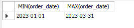 SELECT MIN(order_date), MAX(order_date)