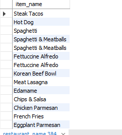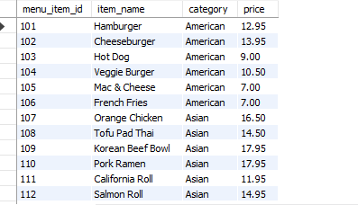 Here you can see a snippet of the menu_items table.