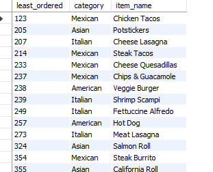 ORDER BY least_ordered ASC;