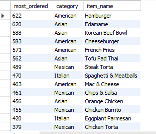 ORDER BY most_ordered DESC;